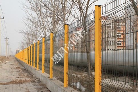 鐵絲網小區圍欄是由排焊機對鐵絲焊接成型,在經過折彎、表面處理,立柱制作,安裝后形成。
