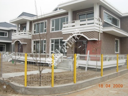 小區圍欄常見有鐵絲網焊接成的護欄和鋅鋼柵欄。