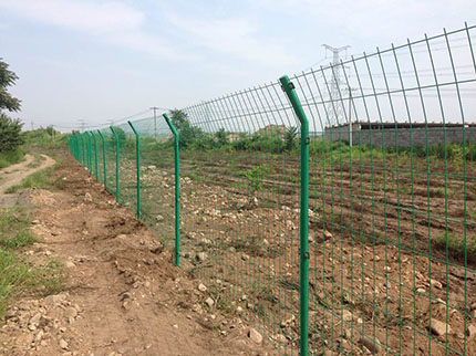 軍事基地防護(hù)網(wǎng)外觀尺寸為1700×3000mm(立柱中心距),邊框采用30×50×2.0mmd的矩管制成,網(wǎng)片由直徑為4mm的鋼絲焊接,網(wǎng)孔75×150mm,立柱用40×40×2.5mm的方管制成。立柱、網(wǎng)片鏈接板采用90°折角,厚度4mm鋼板制成,金屬網(wǎng)應(yīng)進(jìn)行鍍鋅后防腐浸塑處理,防護(hù)柵欄安裝做到“嚴(yán)、直、齊、美”,線路封閉嚴(yán)實(shí),不留間隙;沿線路方向順直,不忽遠(yuǎn)忽近;防護(hù)柵欄頂端和下端縱向過渡平滑整齊,不忽高忽低;要求整體效果美觀,避免給人凌亂感覺。安裝前應(yīng)平整場地,柵欄底部距離地面高度按10cm設(shè)計(jì),不滿足時,應(yīng)進(jìn)行回填處理。